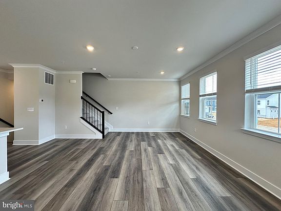 Welcome Home to the Ellicott Townhome with Detached 2-Car Garage St Charles - Highlands White Plains MD Designed with both family living and entertaining in mind, this beautifully crafted three-story townhome offers space, style, and functionality in every corner. The striking stone exterior adds a touch of modern charm, while inside, the first floor welcomes you with a flex space and recreation room with access to the backyard—perfect for play, guests, or a home office. Upstairs, the open-concept main level features a spacious family room, gourmet kitchen with a stainless steel French door refrigerator, cooktop, double wall oven, dishwasher, and microwave, plus crown moulding and elegant finishes throughout. The dining room flows seamlessly onto a 20' x 10' composite deck with vinyl rails, creating the ideal indoor-outdoor experience. Wide plank flooring runs throughout the lower and main levels for a sleek, cohesive look. Enjoy the convenience of a detached two-car garage, plus additional driveway parking for two more vehicles. The third floor is home to all three bedrooms, including a primary suite with crown moulding, tray ceiling, a walk-in closet with natural light, private water closet, dual vanities, and a spa-inspired shower with built-in bench—your personal retreat after a long day. Fun for the whole family starts in the heart of the home: the chef-inspired kitchen makes meal prep a joy, while the spacious bedrooms and smart layout offer room for everyone to relax and recharge. Note: This home is scheduled for completion NOVEMBER 2025! Pricing and features are subject to change. Model photos shown for illustration purposes only. Schedule your private tour today or visit us during our Weekend Open House hours to explore the model in person