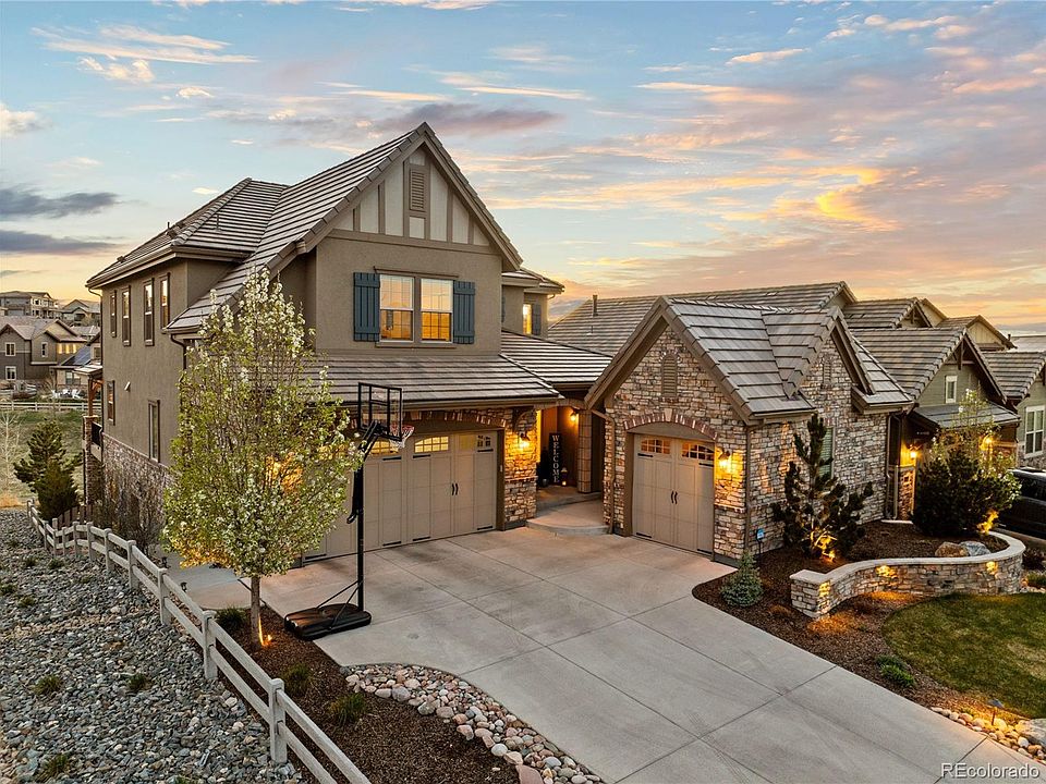 Welcome to your dream home nestled in the prestigious gated community of Backcountry in Highlands Ranch! This meticulously maintained residence offers an unparalleled blend of luxury, comfort, and convenience. Step inside to discover a spacious main floor adorned with gleaming hardwood floors, featuring a versatile study perfect for remote work or quiet reading, as well as a convenient main floor bedroom for guests or multigenerational living. The heart of the home is a chef's delight, boasting a large kitchen equipped with double ovens, a generous gas range, and ample counter space for culinary adventures. Enjoy the cozy ambiance of a dual-sided fireplace that elegantly connects the study and family room, creating the ideal setting for intimate gatherings or tranquil evenings. Upstairs, retreat to three bedrooms and three bathrooms, offering plenty of space and privacy for the entire family. A versatile loft area provides additional flexibility for a playroom, home gym, or relaxation zone. The walkout basement is an entertainer's paradise, featuring a bedroom, bath, and a spacious recreation area complete with a cozy fireplace and a convenient walk-up bar area, perfect for hosting unforgettable gatherings with friends and family. Unwind in style in the expansive covered deck, overlooking serene open space and boasting a built-in firepit, creating the ultimate outdoor oasis for relaxation and enjoyment. With a three-car garage and ample storage throughout, this home effortlessly combines luxury living with practicality. Don't miss this rare opportunity to own a slice of paradise in one of Highlands Ranch's most coveted communities. Schedule your showing today and make this stunning property your own!