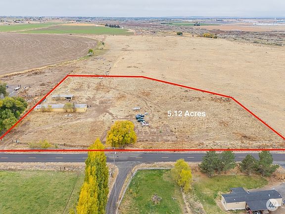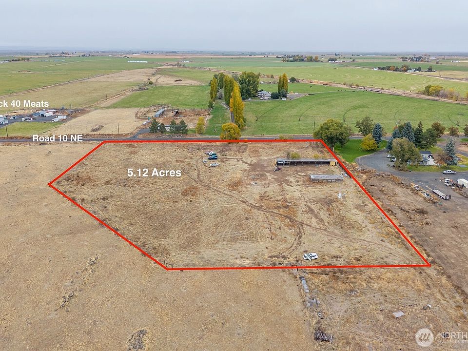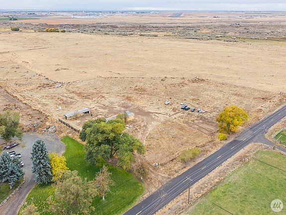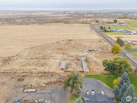 Unique and rare 5 acres north of town that sits perched up offering a rare territorial view of Moses Lake (located across the road from Block 40 Meats. Property is mostly fenced. 100' Well drilled in 2016 (will need power and a pump). Existing outbuildings. No covenants. Buyer to verify with county zoning and permitted uses.