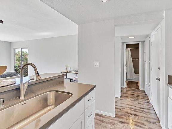 Conveniently located, 1 bedroom 1 bath condo is open, bright, and updated with views of mature trees and a nearby courtyard. The complex features 3 pools, a spa, BBQ area, tennis/basketball/pickleball courts, a gym, clubhouse, dog park, and several landscaped courtyards. No smoking allowed. Renter pays Gas, Electric, Cable, and Internet. Water is included. Shared laundry. One assigned parking plus one extra parking permit. 12 months lease term.