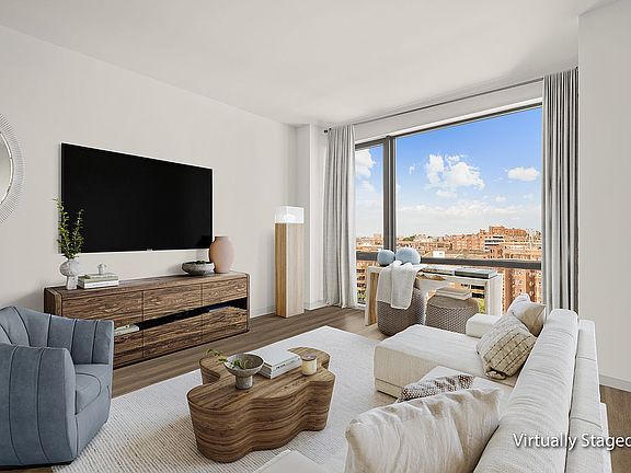 Introducing Residence 8H at BLVD, a stunning two-bedroom, two-bathroom condominium with balcony that offers an unparalleled living experience in the heart of Forest Hills. Enter this exquisite residence and be captivated by the abundant natural sunlight streaming through larger-than-life windows with picturesque sunsets and Northern views, illuminating the oak hardwood flooring throughout. The oversized living space has great potential to convert to a three bedroom.