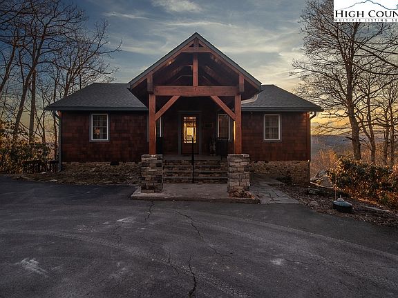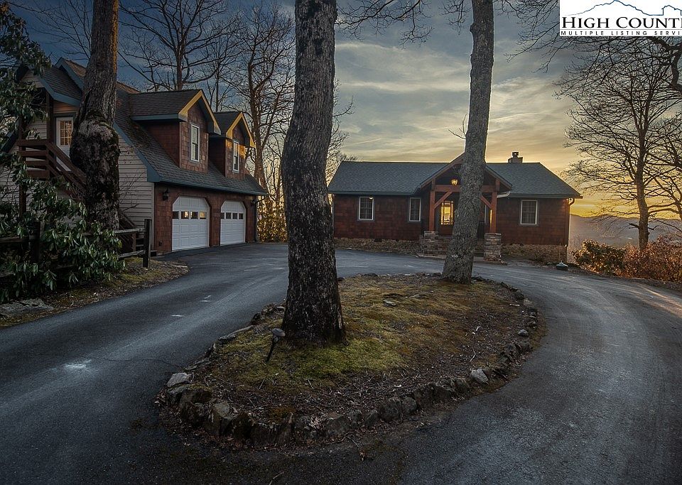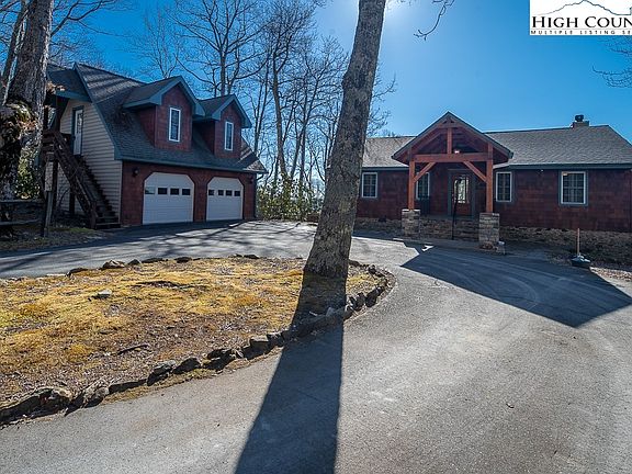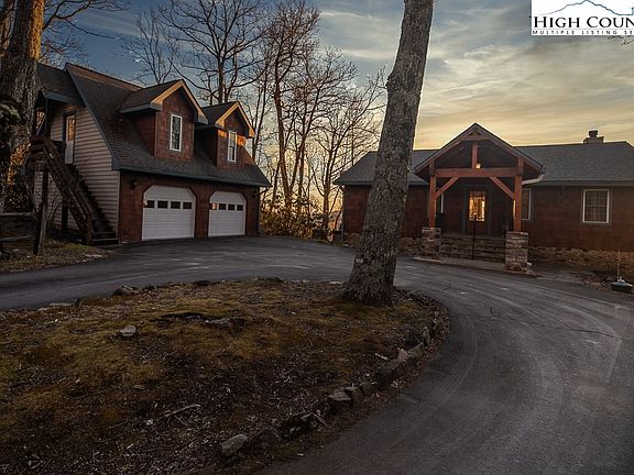 Welcome to Stoneridge Lodge! Positioned at just under 4000ft elevation, easily accessible between Boone & Blowing Rock, & tucked in the rhodos & massive rock outcroppings, this mountain estate features meticulous craftsmanship throughout from the new oversize fireplace, redesigned covered back deck, custom wood floors & reclaimed chestnut barn wood stair posts. Enter through the timber-frame covered entryway into the foyer, and you are instantly wowed by the forever views through the oversize sliders facing west to enjoy gorgeous sunsets. The open living/dining/kitchen has vaulted ceilings & plenty of space to entertain & enjoy the full length covered deck. On the main level is an updated kitchen with gas range, & pantry, & 2 king suites with custom bathrooms. Down the stairs, it opens up to another den space for entertaining & a game table area, that enjoys a full length deck. This level features 2 more oversize king bed suites (one with an extra bed) with their own custom bath, plus another bunkroom & bath. The next level has a large game room, laundry, & accesses a 3rd deck/ hot tub! Completely furnished/ a solid vacation rental if desired/ & a large garage with apartment above!
