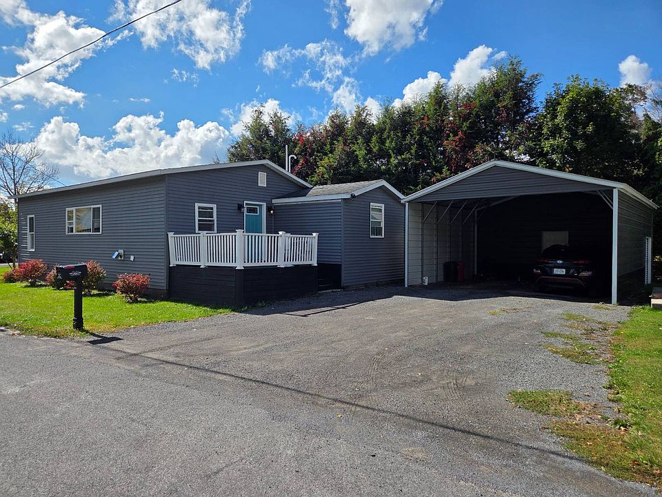 You must see this thoughtfully renovated and updated 4 bedroom/2 bath 14' x 70' c. 1997 manufactured home with 14' x 40' wood frame addition and 2-car oversized garage on .41 acre off quiet dead end side street in the historic hamlet of Roxbury. This well cared for home features a 9' x 13' front deck with sunny southern exposure and mountain view, a 7' x 15' mudroom/laundry room with washer & dryer, a 14' x 28' kitchen/dining area with extensive new cabinetry, all appliances, a farm sink, an 11' center island with butcher block counter and sliding glass doors to a covered 12' x 20' private rear deck overlooking the large fenced back yard. The bright 14' x 22' living room with large picture window has a pellet stove for supplemental heat. The 14' x 14' primary bedroom has an ensuite full bath with double vanity. Down the hall are 2 bedrooms and a 2nd full bath. Off the living room is a 4th bedroom (or home office). New FHA propane heating furnace, new windows, new exterior vinyl siding and new asphalt shingle roof were all installed in 2018. The electric service is 200 amps. The 2-year-old oversized 2-car garage has a passage door to an 11' x 17' mower/garden/tool storage shed with sliding door. The property is serviced with Village water & sewer. To the side of the garage is a bonus 13.5' x 65' +/- cement pad that once supported another manufactured home - offering many options. This special property, now owner occupied, could also be a great carefree weekend/vacation home with excellent Airbnb potential, being so close to Plattekill & Belleayre Mountains and all that the quaint and trendy hamlet of Roxbury has to offer. Schedule your viewing now and be in by ski season!