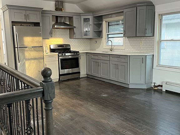 Freshly painted and newly renovated, this bright and spacious home blends comfort with modern design. The kitchen features calming light gray-blue cabinets, a white tile backsplash, gas stove, and new appliances. Hardwood floors and ample windows fill the space with natural light, while the bathroom's stone-accent backsplash adds a touch of elegance.