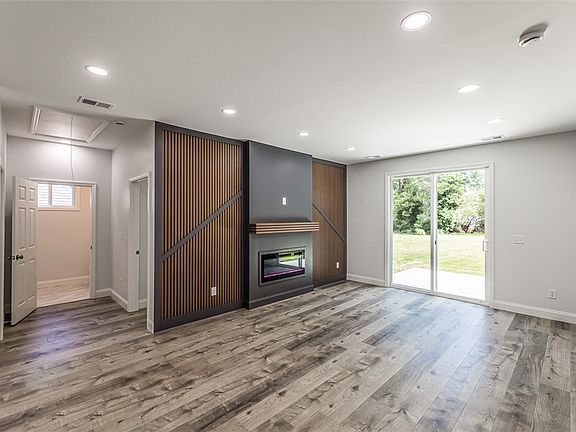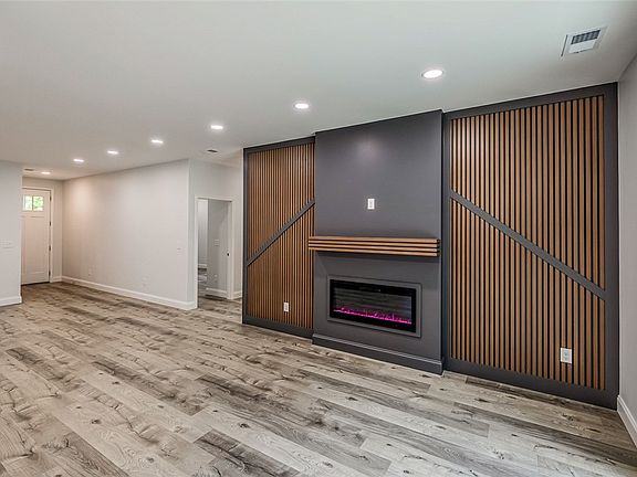 Modern fireplaceLuxury quartz counter topsStainless steel appliancesOpen floor planGourmet kitchenOn-trend cabinets