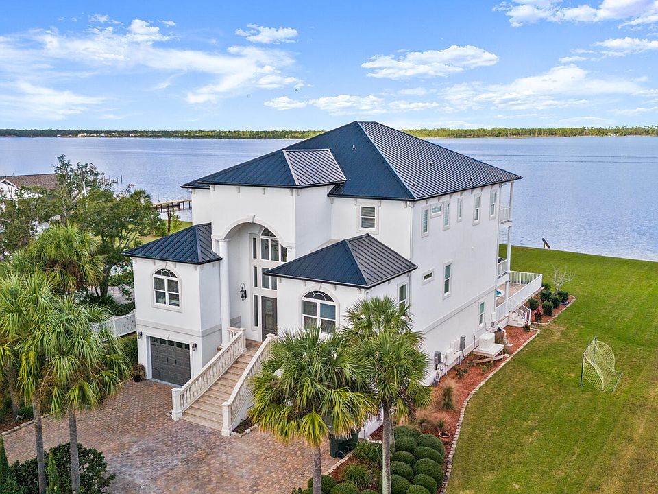 Tucked away at the end of a quiet road in the heart of Lynn Haven, this one-of-a-kind custom bayfront estate offers the ultimate in waterfront living. With over $215,000 in recent upgrades and panoramic views of the bay, this three-story home masterfully blends timeless elegance with modern convenience.