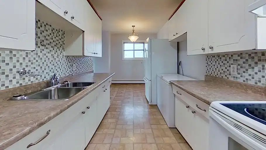 This is a well-designed, open-concept two-bedroom, one-bathroom unit, offering a comfortable and airy living space. You can enjoy your morning coffee or evening relaxation on your own private balcony. The unit offers carpet-free living, featuring durable, easy-to-clean flooring throughout for a clean and modern aesthetic. The well maintained kitchen is fully equipped with full-sized refrigerator, freezer, and stove/oven and includes ample cabinet space. Additionally, you'll find convenient in-unit storage space. Say goodbye to managing multiple bills! Your single monthly rent payment includes ALL UTILITIES, making budgeting simple and worry-free. This covers Heat, Hot Water, and Electricity.