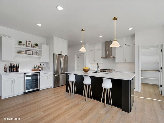 Ideally situated between Appleton & Green Bay, and located on a dead-end road, this new home presents an exceptional living environment within the golfing community of Royal St. Patrick's. The kitchen features a walk-in pantry with plenty of natural light, cabinets with soft close doors, a bar area which includes a beverage fridge, and a large quartz island opening to great room which features a floor-to-ceiling stone fireplace. The split bedroom layout provides privacy for both the primary suite & guest bedrooms. The primary suite boasts a walk-in closet and a private bathroom complete with double sinks, a custom tile shower, and a private toilet area. The covered patio invites relaxation with serene views of Royal St. Patrick's Golf Course while still maintaining your privacy.