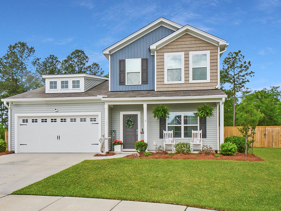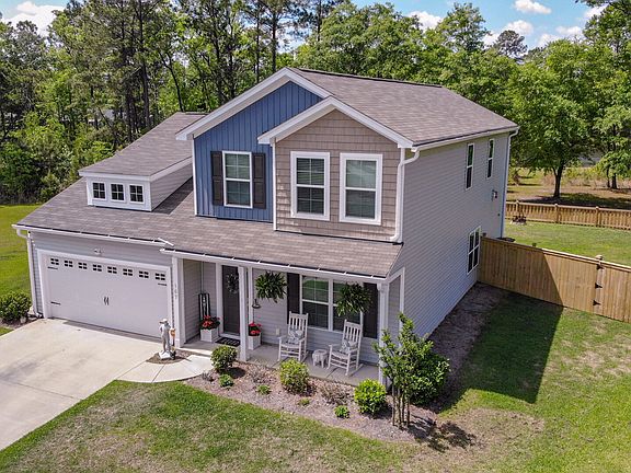 This stunning home offers everything you desire: 4 bedrooms plus a loft, 2.5 bathrooms, a large primary suite downstairs, and an impressive kitchen equipped with modern amenities. The open floor plan features a spacious family room with a gas fireplace, a separate dining room, and a remarkable backyard. Located at the end of a cul-de-sac, the property boasts a wide pie-shaped lot that backs up to Federally protected woodlands and a large pond, ensuring privacy with no direct neighbors behind.Upon entering the foyer from the welcoming front porch, you will find luxury vinyl plank wood flooring throughout the downstairs, custom trim details, elegant lighting, and a sizable formal dining room on the right. Proceed down the hall to the well-appointedkitchen, complete with granite countertops, a gas range, large kitchen island, and numerous upgraded cabinets. The kitchen opens to a generous breakfast area with a buffet nook and a spacious family room, which includes a gas fireplace and large windows overlooking the picturesque backyard. The primary bedroom is located downstairs and features an expansive layout with an attached private bathroom, dual vanities, a walk-in shower, and a substantial walk-in closet. Upstairs, there is a large loft suitable for a game room or home office space, along with three additional bedrooms, each with walk-in closets. The second full bathroom upstairs also includes dual vanities. Additional highlights of this home include a built-in dog retreat under the stairs, a large laundry room, walk-in attic access, and 5 minutes away from the shops and dining at both Nexton and Carnes Crossroads, while enjoying the tranquility of the protected natural buffer behind the backyard. I almost forgot to mention the schools... Be sure to check out the strong schools this neighborhood is zoned to attend.