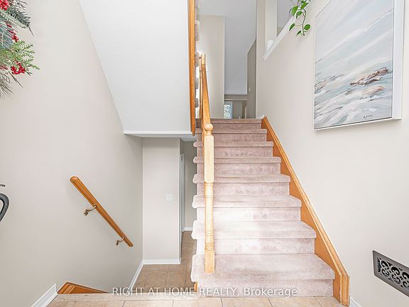 Welcome to this beautiful 3-bed, 3-bath townhouse perfectly situated at the border of Brampton and Mississauga! Enjoy ravine views from the front of your home, creating a calm and inviting space while being just minutes from urban amenities. The main level features a well-designed layout with connected living, dining, and kitchen area, complemented by a bright family room ideal for both everyday living and entertaining. Step outside from the kitchen to a walk-out deck perfect for relaxing or entertaining. Upstairs, the primary bedroom includes a large walk-in closet and private ensuite, along with two additional bedrooms and a well-appointed main bath. The lower level features a versatile recreation room with walkout to a fully fenced backyard with a private hot tub for year-round enjoyment. The home also features convenient in-unit laundry and an attached garage with inside entry. Located close to Shoppers World, Sheridan College, major highways, schools, shopping, transit and parks, this area provides excellent access to everyday amenities. Recent updates include roof (2021), A/C (2025), fresh paint, refreshed bathrooms and vanities with modern light fixtures, updated electrical outlets and switches, and professional cleaning throughout.