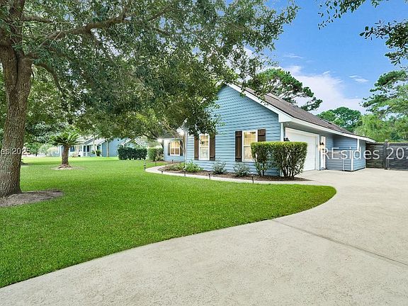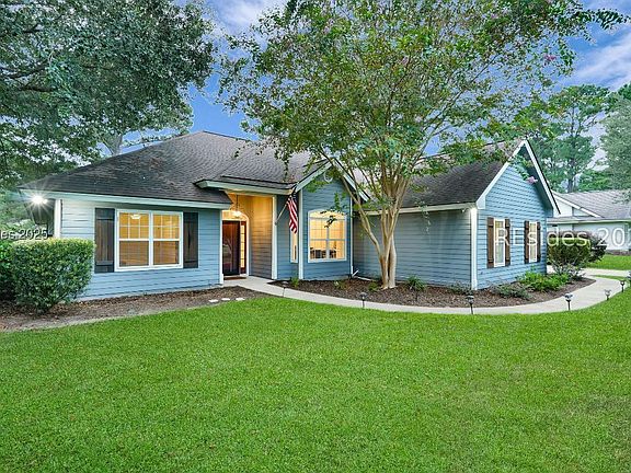 Welcome to your dream home in the sought-after Heritage Lakes community! Perfectly positioned on a spacious half-acre lot, this beautifully updated one story, 3-bedroom, 2-bathroom home has a bonus room/ office/ or formal dining room, a fenced backyard with peaceful lagoon views and spectacular evening sunsets ideal for relaxing or entertaining. This home has generous driveway and a short golf-cart ride to historic Old Town Bluffton and minutes to Hilton Head Island make this location hard to beat. Inside, the primary room has a spacious walk-in closet with built in organizer, double sinks, separate shower, tall ceilings and a lagoon view, the remodeled kitchen shines with KitchenAid appliances, quartzite countertops, a gas stove, soft-closing cabinetry, and elegant Travertine stone floors and skylights for great natural lighting. The telescope sliding doors invite the outdoors in, creating a seamless connection to one of the best screened-in patios in Heritage Lakes. Whether you're entertaining friends or enjoying a quiet Lowcountry evening, this space is perfect year-round. With a 2018 roof, AC, and hot water heater all in excellent condition, this property combines style, location, and worry-free living an exceptional find for those seeking comfort and convenience in Bluffton. HOA $633 annually. Picture with the pool is AI. It is an idea of what could be in the backyard.