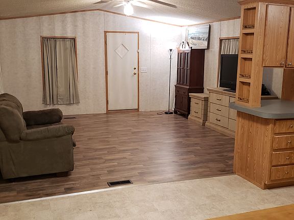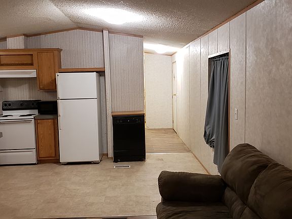 The main home is a 2006 single-wide 2 bedroom, 2 bathroom manufactured home that is 16'x66' (1056 SF). It has central heating and air conditioning (all electric). Previous tenant used some window air conditioners to keep bedrooms cooler than the rest of the house to save money. It has wood laminate and ceramic tile flooring. Washer/dryer connections inside. Comes with refrigerator, stove, dishwasher. Has a ramp for access to the front door. There is a metal 2 car carport.