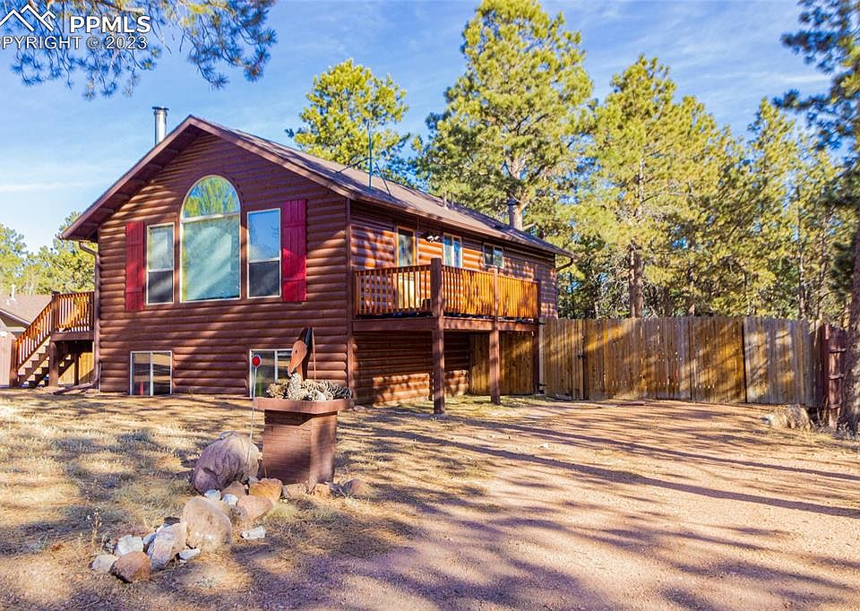 A taste of the Colorado Rocky Mountains! Log sided home on 1 acre of fully fenced land; bring your horses! This 3-bedroom, 2 full bath home is perfect for every season with a hot tub, covered porch on one side, and a nice deck on the other side leading to a field of wildflowers and your very own forest. The family room has log sided walls in tongue and groove pine, cathedral ceilings, large south facing windows, and a wood stove that will heat the entire main level. The kitchen has new Cambria quartz counter tops, new sink and faucet, as well as beautiful light fixtures! The oversized master bedroom is accompanied by a large walk-in closet and adjoining full Bath. The lower floor has its own entrance, another family room, two more bedrooms, full bath and large utility room. Home would make an ideal short-term-rental…not in city limits, yet very close to town and all the adventures the Rocky Mountains has to offer! Just 5 minutes to the town of Woodland Park, shopping, schools, and within walking distance to the hospital. Don’t wait to see this home for yourself!