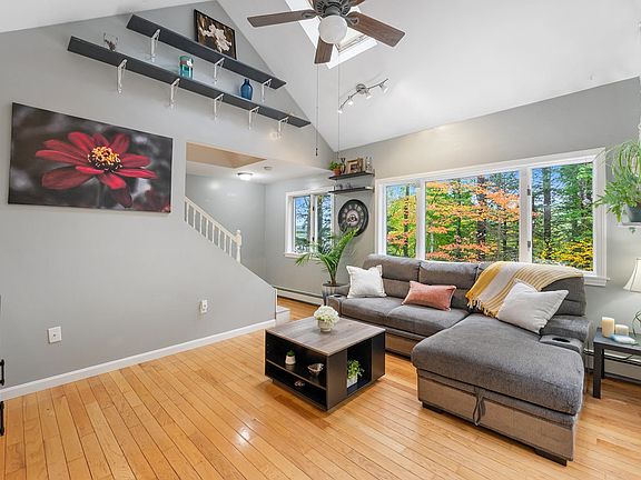 Looking for a slice of "lake-life?" Don't miss this 4-bedroom, 2 bath contemporary cape on Lake Horace in west Weare! This spacious newer construction house is perfect for larger households needing space. The bright oversized windows throughout showcase the nature all around this property. The main level offers an updated kitchen with stainless steel appliances, white cabinets and a large pantry. The living room is the hub of the house with cathedral ceilings and windows overlooking the lake. There are 2 - 3 rooms on the main level that can be used as bedrooms or offices. The sunroom on the rear side of the house has a pellet stove for cooler nights. On the upper level, there are two additional bedrooms and a full bathroom. On the lower level, there is the attached 1-car garage, additional flex room and a utility room for more storage. The yard is set up for more entertaining! There is a koi pond, garden beds and an outside bar with hot tub. Horace Lake is a full recreational lake for your year-round outdoor activities. Whole house generator! Recent improvements include new gutters (2023) and mini-splits for cooling (2023).
