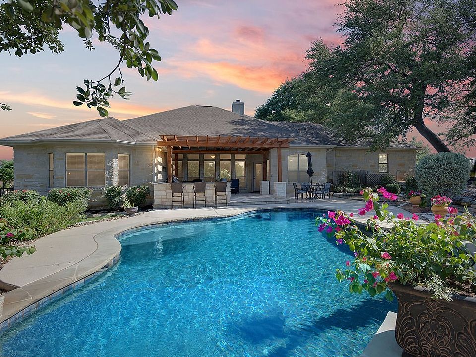 Gorgeous Bobby Fredrickson home w/open layout & storage galore! Laid on a private 1-acre lot in the quietest section of The Woods, owners have updated this home beautifully w/wood floors, antique cabinets, built-ins & high-end KitchenAid appliances. The incomparable outdoor space includes built-in grill, granite bar & custom cedar pergola resting on an enormous stone patio. Warm up by the stone fire pit or cool down in the glistening swimming pool both peacefully surrounded by oak trees & wrought iron.