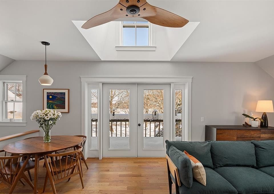 Welcome to village living in the heart of Waitsfield! This fully renovated two bedroom condo occupies one of four units in a beautifully preserved 1830s Victorian home just a short sidewalk stroll from Waitsfield’s shops and restaurants.The main living area is filled with natural light thanks to abundant windows and French doors that open to a private back deck, where you can enjoy views of the Mad River, distant mountains, and over 150 acres of conserved farmland. Inside, the thoughtfully designed layout offers three inviting dining options: a cozy kitchen breakfast nook, casual counter seating, and a formal dining area. The kitchen features high-end, space-efficient Bosch stainless steel appliances, leaving plenty of counter space for cooking and entertaining. Down the hall, you’ll find two bright, spacious bedrooms, each large enough for a king-size bed and a workstation. With high-speed internet on site, working from home is effortless. New red oak floors bring warmth throughout the living areas, while slate tile enhances the entryway and bath. This home even includes a one-car attached garage! Make this home yours today! Completely move-in ready, with furnishings negotiable.