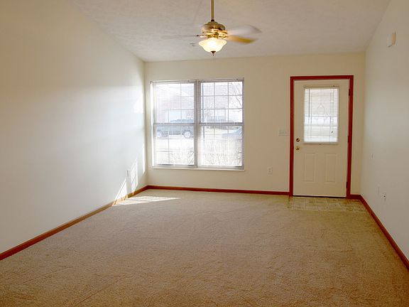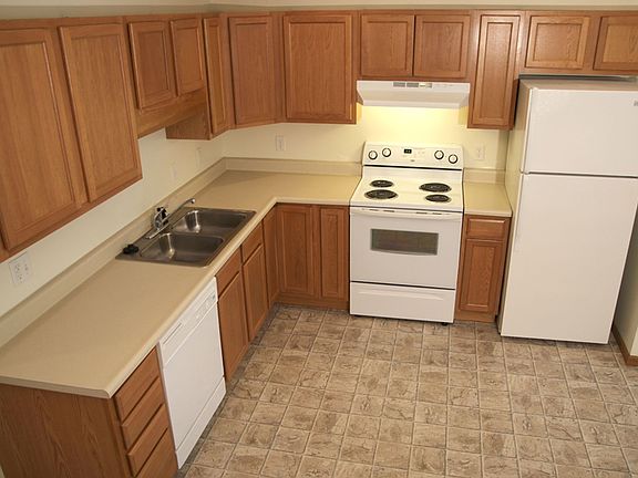 Nice 2 bedroom ranch plan with 2 bathrooms, includes kitchen appliances, washer/dryer, and water softener, attached one car garage, gas heat, central air. Vaulted ceiling in open living area. The master bedroom has a large walk in closet and the home has ceiling fans throughout.