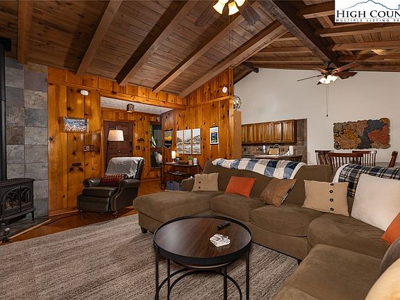 One level living with a VIEW! 3 bedrooms, 2 full bathrooms fully furnished! This is the ultimate getaway. Nice level parking and easy walk to the front door. Fenced yard for your fur babies. Skyline Skybest Fiber Internet. Split floor plan with master that boasts its own sliding door to the back deck and ensuite bathroom. Large laundry room complete with wash sink. The kitchen, dining, and living room all overlook the view to the Blue Ridge Parkway!!!! Enjoy that amazing view while sitting next to your very own cozy little propane fireplace!!! The two bedrooms on the far side of the house are a bunk room and a queen bedroom with private slider to the back deck and the view. Central Heat and Air. Radon System in place. Great for short term rental or full time living. TV's in all bedrooms. Located in the gated community of Powder Horn Mountain. Access to miles of hiking trails, community pool, Clubhouse, fitness center, campground, paddleboats, fishing, fresh trout waters, playground, chapel, full time maintenance, trash pick up once a week and more! POA dues are 1988 per year. Structural Engineering report from previous owner in docs. No septic permit found but septic inspection from 2024 in attachments.
