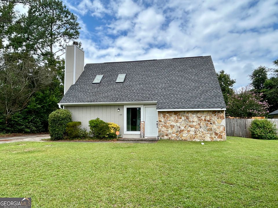 Cozy Cabin Charm with Modern Upgrades! This Super Cute home features an open-concept living room with a versatile office nook perfect for remote work or reading, a Dining Room, and a stunning stone wood-burning fireplace. Soaring ceilings with a catwalk leads to 2 spacious bedrooms upstairs, Primary Suite is on Main level. Gorgeous Kitchen with granite countertops & stainless steel appliances. Large Laundry Room. Out back, enjoy an above-ground pool and fenced backyard-perfect for relaxing or entertaining.