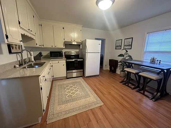 This is your starter home OR your potential AirBnB, and it's move in ready! And it's being sold totally furnished with an acceptable offer! INVESTORS, HERE IS YOUR INVESTMENT THAT COULD BE ALREADY FURNISHED FOR YOUR RENTERS WITH AN ACCEPTABLE OFFER! Featuring one bedroom, one bath, a cozy living room, and eat-in kitchen, this home is ready to welcome you right in! College students, this could be your new dorm and a great investment! The backyard has been newly fenced. There is a new roof, new HVAC, new kitchen counters and faucet, new oven and microwave, newly tiled shower, and you don't have to do a thing! This lovely home is in the city limits and only a minute or two from downtown and shopping! Don't let this get away!!!