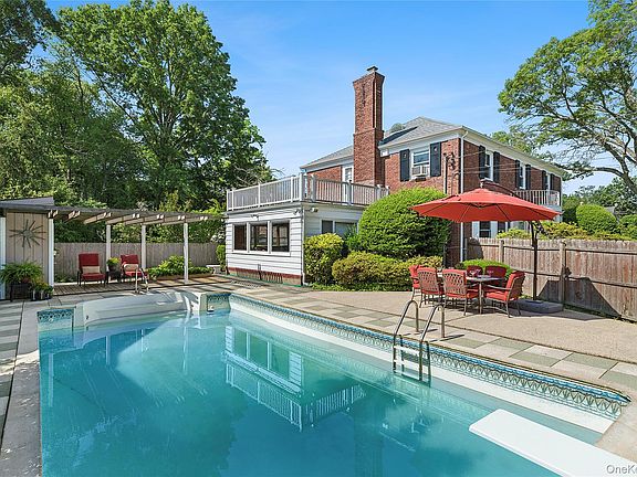 Brand new inground poolCenter hall brick colonialSerene landscaped yardWhite oak hardwood floorsVersatile first-floor bedroomPrimary bedroom suiteHeated den