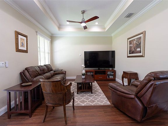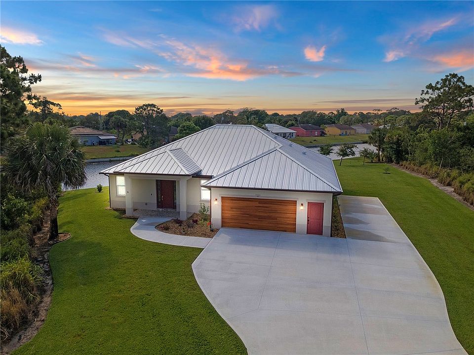 Uncompromised quality flows throughout this beautiful 2023 custom designed, custom built estate home. Set on nearly 1/2 acre corner lot with full canal views. No HOA. 40’ pad for Boat/RV - full RV hook-up. Seamless metal roof and Pella impact glass throughout. High-end materials and finishes from floor to roof in this 1995 sq ft 3/2 split floorplan home . See feature sheet slide for full details. Spacious 2 car garage with storage/workshop space, natural light and walk-out door. Home connected to city water and sewer. Expansive yard irrigated via dedicated well with plenty of room for pool.