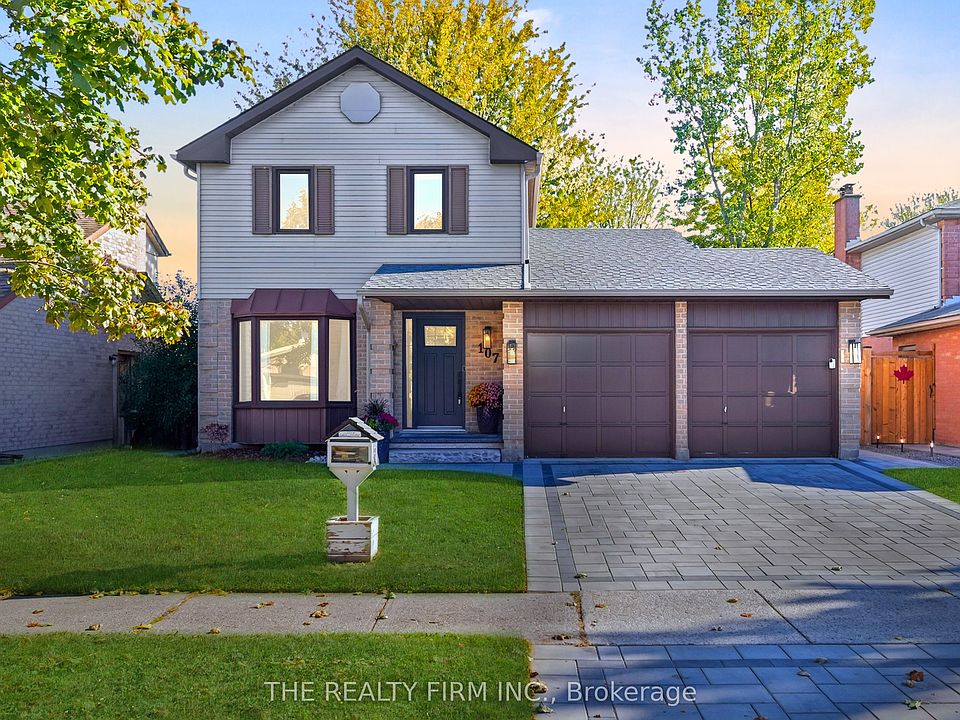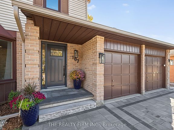 Discover ultimate family living at 107 Cheswick Circle. This beautifully updated two-storey home blends comfort, style, and function in a quiet, tree-lined neighbourhood where kids can ride bikes and neighbours still wave hello. Offering 3+1 bedrooms, 2 bathrooms (plus a basement rough-in) and double-car garage with paving stone driveway, it's the kind of home that instantly feels welcoming. Step inside to bright, open spaces finished with new vinyl plank flooring on the main floor and new carpet in the lower level. The dining room's crown moulding and large bay window create an inviting setting for family meals and holidays, conveniently located next to the 2-piece bathroom. The modern kitchen shines with stainless steel appliances, quartz counters, island with breakfast bar plus a generous amount of cabinetry for effortless organization. The adjoining living room centers around a cozy gas fireplace framed in charming shiplap, surrounded by custom built-ins. Oversized main-floor laundry connects to the garage and side yard, making everyday life easier. Upstairs, three spacious bedrooms feature ceiling fans and soft carpeting for comfort. The primary bedroom offers a walk-in closet, while the updated 4-piece bathroom showcases stylish finishes and a linen closet for added storage. The finished lower level extends your living space with a rec room, guest bedroom, and rough-in for a future bathroom -- ideal for a granny suite or teenage retreat. Out back, enjoy the serenity of nature with no rear neighbours and a stunning backdrop of forest and parkland. Relax under the gazebo, host barbecues on the paving stone patio, or watch kids and pets play freely in the open green space framed by mature trees. Additional recent updates include new shingles and eavestrough (2024) offering peace of mind for years ahead. Close to parks, trails, schools, White Oaks Mall, and Highway 401, this home delivers comfort, community, and connection -- everything a family could hope for.