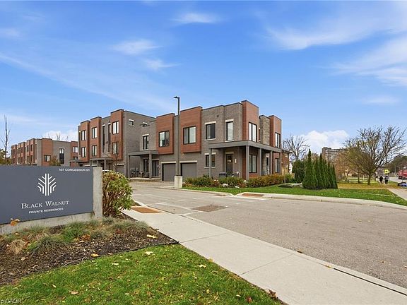 Discover refined living in Black Walnut- Private residences - an enclave of contemporary homes within walking distance of historic Galt. This sun-filled corner semi showcases striking modern architecture and over 1,800 sq. ft. of thoughtfully designed living space. Inside, you’ll find 9’ ceilings, hardwood floors, stone countertops, stainless steel appliances, and an oak staircase that adds timeless sophistication. Recent upgrades include designer light fixtures, an updated powder room, and freshly completed exterior landscaping that enhances curb appeal and outdoor enjoyment. The open-concept layout is ideal for entertaining, complemented by 3 spacious bedrooms, 3 bathrooms, and a primary suite with a glass shower and elegant finishes. Complete with privacy fencing, an attached garage, and low condo fees, this home blends modern comfort and effortless living. Steps to the Grand River’s scenic trails, local cafés, and the buzzing Gaslight District, this location captures the perfect balance of modern living and heritage charm.