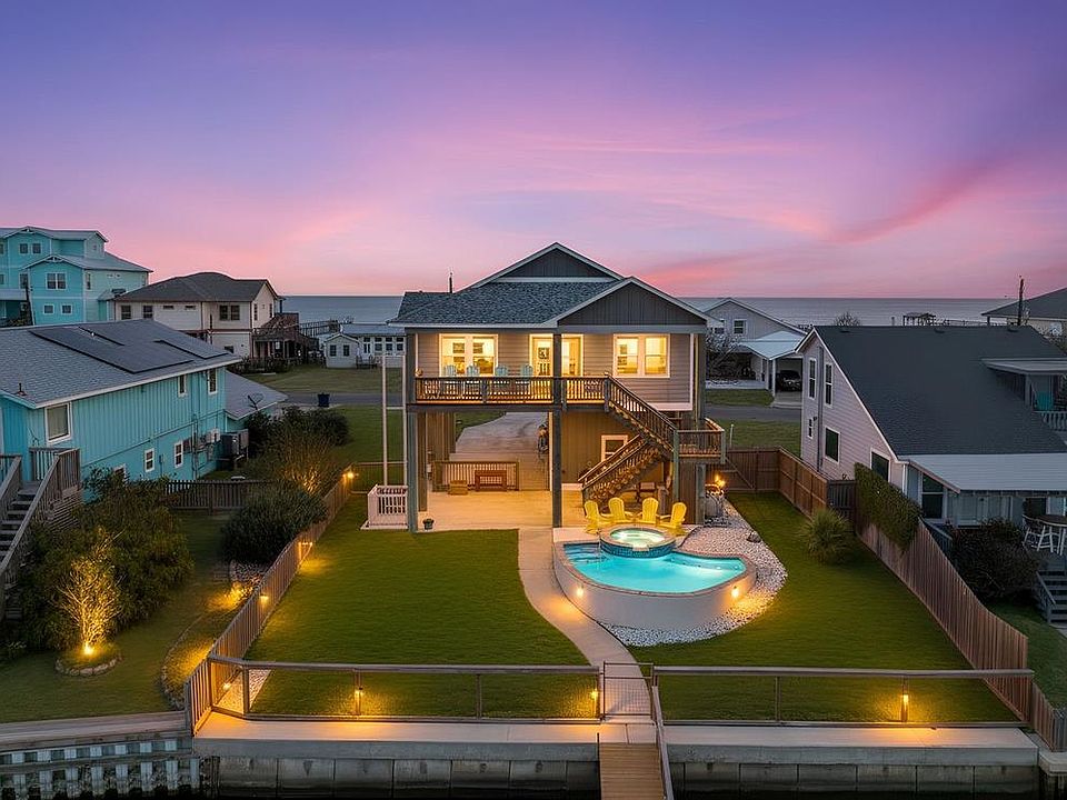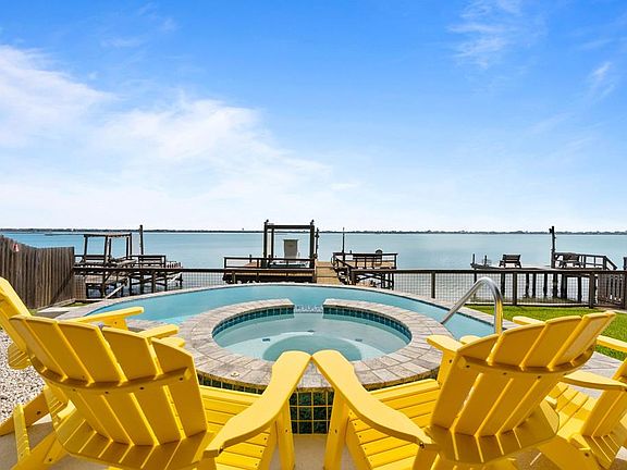 Welcome to coastal living at its finest! This stunning waterfront home is perfectly situated in the highly sought-after Copano Ridge Rd area, offering direct access to the coastal bay and premier fishing. Designed with a relaxed coastal style, the home features a heated pool and a fully fenced yard for privacy, and an elevator providing easy access to the second floor. Enjoy effortless boating with your own private pier and boat slip just steps away. The huge insulated garage includes a bathroom, a 10-ft insulated garage door, and ample space for vehicles, toys, or a workshop. Spray foam insulation throughout the entire home and garage ensures excellent energy efficiency. Connected to public water and sewer, this property comes fully furnished and truly move-in ready—just bring your clothes and start enjoying the coastal lifestyle!