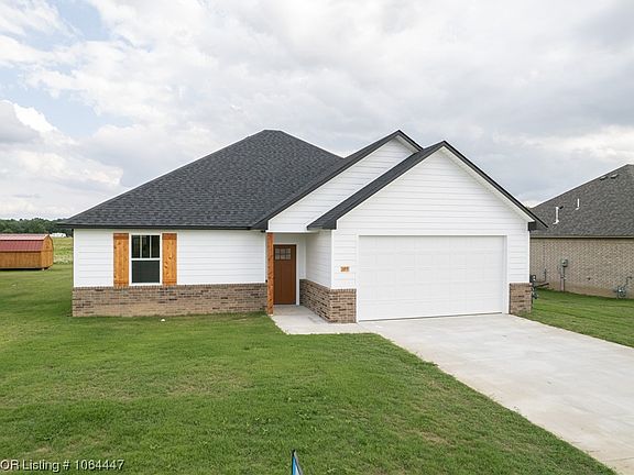 Beautiful new 3 bdr, 2 bath, 2 car garage home only minutes to Fort Smith! Open floor plan, split bedrooms, high ceilings, gas hot water tank, gas high efficiency heater, covered back porch, Stainless Steel appliances, wood look vinyl plank thru out home, Led lights, granite, custom knotty alder cabinets, architectural shingles and a generous yard. Protective covenants in place but no POA dues. 1 yr builder warranty included. owner/agent