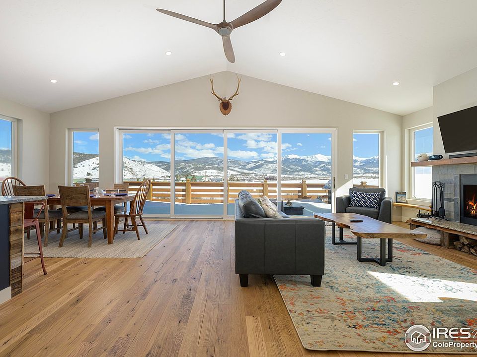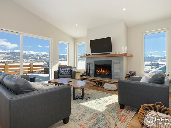 Welcome to this brand-new residence in Tabernash, offering breathtaking, unobstructed views of the mountains & plains & located just 10 minutes from both Winter Park Resort & Granby Ranch. Thoughtfully designed w/ over 2,100 sqft., 4 beds, & 3 baths, this custom two-story home combines contemporary amenities w/ mountain charm, industrial chic finishes, designer lighting, & floor-to-ceiling windows. The entry level welcomes you w/ a spacious mudroom featuring tiled flooring, bench seating, & generous storage for coats, boots, & gear, the perfect drop zone after a day outdoors. This level also includes a cozy den and TV room w/ hardwood floors, a wet bar, & ample space for games & gatherings. Two bedrooms are located here, one styled as a bunk room w/ an add. double bed, the other w/ a queen bed. Both share a large, well-appointed full bath. Upstairs, the main level showcases soaring vaulted ceilings, expansive windows framing panoramic mountain vistas, & airy open layout ideal for entertaining. The gourmet kitchen features stainless steel appliances, a breakfast bar, & seamless flow into the dining area & living room, anchored by a wood-burning fireplace w/ a custom live-edge walnut hearth. Step outside to the impressive 650 sqft deck complete w/ private hot tub perfect for entertaining guests, dining under the stars, or savoring morning coffee w/ sunrise + sunset views. The main level also offers a serene primary suite w/ an en-suite bath featuring dual vanities, decorator-tiled shower, & walk-in closet. An additional bedroom, full bath, & laundry area complete this floor. A detached 650 sqft. Studio Shed sits behind the home, offering future potential as an ADU/in-law suite. W/ a kitchenette, washer/dryer, mini cooktop, hot water heater, & updated lighting, it's ready for finishing touches & permitting. This inviting mountain retreat blends functionality, comfort, & style w/ proximity to world-class skiing, hiking, biking, & the best of Grand County living.
