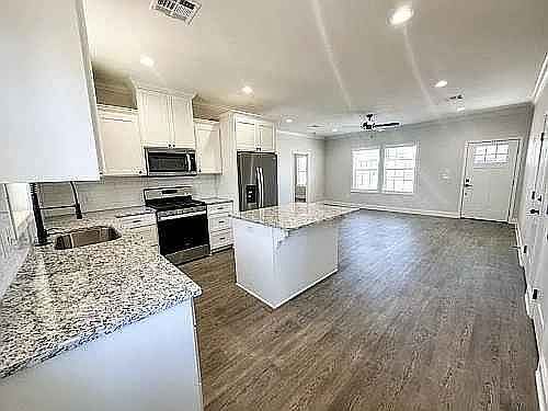 Home features 1 car garage and spacious driveway, Quartz throughout, large laundry room and pantry, all electric, built in microwave, rear covered porch, and open living/dining concept.
