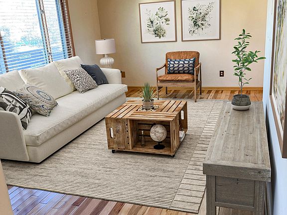 Don't miss this great 3 bed, 2 full bath rambler on large lot near schools and parks in Monticello, located in a quiet cul-de-sac neighborhood. Home boasts new hickory floors, solid hickory doors, wood blinds, updated rustic lighting fixtures, and ceiling fans. Newer AC and water heater. New roof in 2022, new exterior paint in 2023. Large 36x24 2-stall extra deep heated garage. 3 lean-toos for extra storage, plus a garden shed. Aggregate patio with aquatic pond. Fenced yard with dog run and new in-ground yard irrigation in 2022!