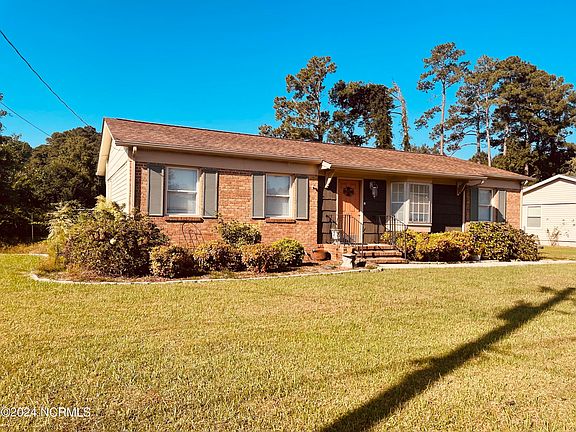 Outside, the large backyard, enclosed by a chain-link fence, is ideal for gatherings around the fire pit or relaxing on the covered back porch. The shed offers extra storage for tools and toys. Conveniently located near Cherry Point Base, shopping, restaurants, and the beaches, this home provides the perfect blend of serenity and accessibility.