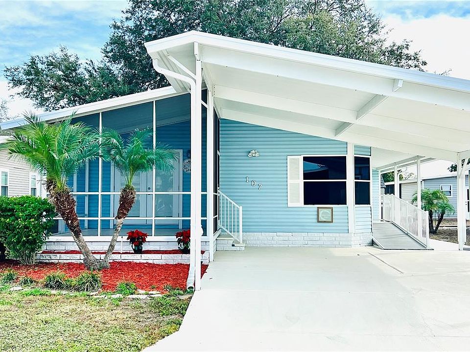 This beautiful home is located in the sought after Gull Aire Village. This move in ready 2 bedroom and 2 bathroom home has an open floor plan, vaulted ceilings, new appliances, large Island for cooking, eating or entertaining, 2 car side by side car port, large screened in front porch, exterior storage unit, new luxury vinyl flooring, new quartz counter tops in the kitchen and bathrooms, wheel chair access ramp in the front drive way, indoor new washer and dryer, new tie down system, stabilizing system, and new 5 ¼ base boards throughout. Gull Aire Village has a large clubhouse, pool, spa, shuffle board, bocce ball and planned activities. The HOA fee is only $50.00 a month, you own the land, 1 pet permitted (no weight restrictions). Gull Aire community is 5 mins to Publix, retail shops, restaurants, Countryside mall, Mease Countryside Hospital and a Chi Chi Rodriguez golf course. Enjoy your mornings drinking your coffee or tea on your front porch or enjoy activities at the club house in Gul Aire Community.