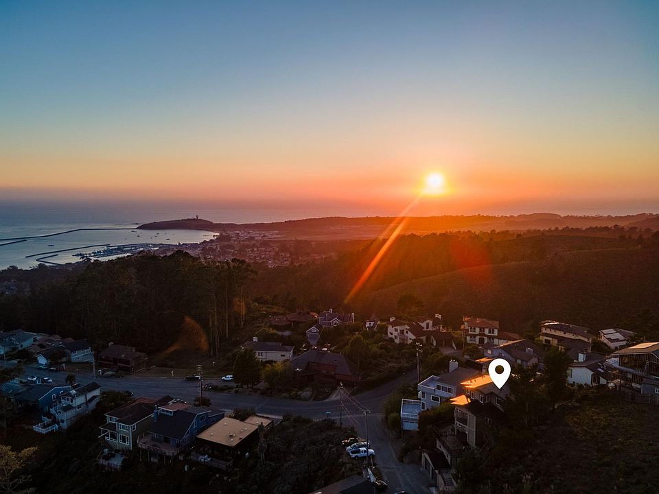 This "castle in the sky" captures sweeping coastal views from the Ritz Carlton to Mavericks! Perched in the El Granada Highlands, it offers unencumbered sightlines and easy access to Quarry Park's panoramic trails. Inside, soaring cathedral ceilings with exposed beams and a large skylight create an airy, spacious feel that echoes the openness of the surrounding landscape. The main level centers on a chef's kitchen with adjacent dining area, family room, formal living room, and music room with baby grand piano. The top-level primary suite is a private retreat with forest and ridgeline vistas, a home office, walk-in closet, and a spacious bath with a Japanese soaking tub - ideal for a relaxing soak or invigorating cold plunge. The lower level, with private entrance from the elevator or stairs, offers excellent potential as a second unit with a separate living area, kitchenette, full bath, and bedroom with direct backyard access. Energy resilience comes from a 10.47 kW Solar Roof (2020, NEM 2 rights) paired with two 13 kW Powerwalls. Dramatic views, strong bones, and quality systems await your finishing touches. Minutes to Surfers Beach, harbor dining, and downtown Half Moon Bay, 107 Dolphine Avenue delivers an elevated coastal lifestyle above the Coastside's most iconic views.