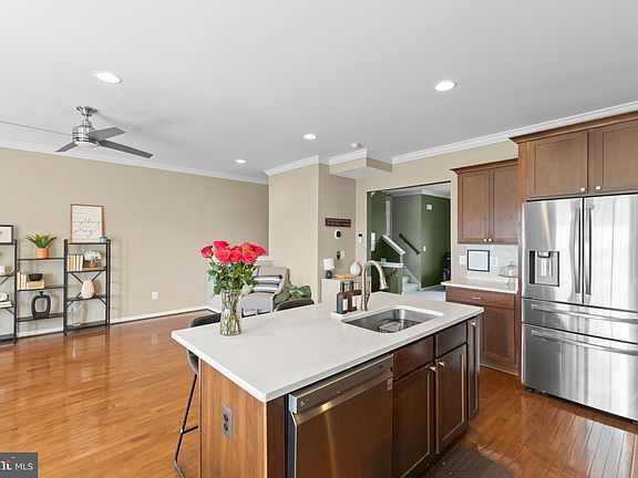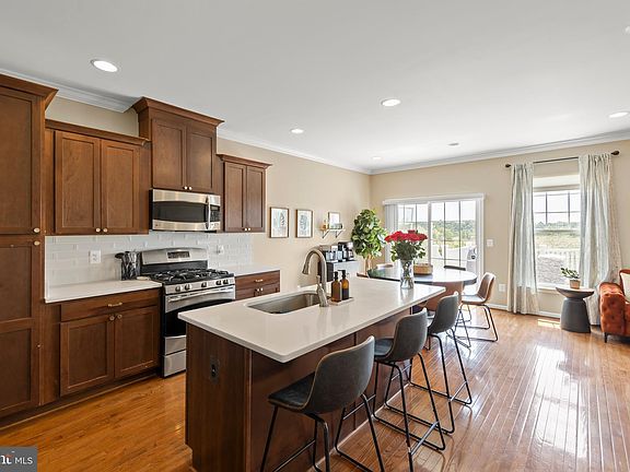 Welcome to "Vista Virtue", this exceptional townhouse in Snowden Bridge features 3 bedrooms, 3.5 bathrooms, and a stunning view of endless farmland. The phenomenal deck, complete with stairs connected to a fenced patio, provides a fantastic outdoor space perfect for entertaining or simply relaxing and enjoying the peaceful scenery. This Blue Ridge floor plan is spacious, open, and versatile. The master suite on the upper level comes with two walk-in closets, a deluxe bathroom with two vanity bowls, and a separate shower and soaking tub. Additionally, there are two large bedrooms with closets, a full bath, and a laundry closet with quality storage cabinets. The main level offers an open kitchen with recently upgraded cabinets and quartz countertops, stainless steel appliances including a NEW refrigerator, a NEW dishwasher, gas cooking, and a built-in microwave. The cozy living room makes this level the perfect one for everyday living. The first level features a full bathroom and a large bedroom or recreation room, offering flexibility to suit your lifestyle. The fully finished and painted garage comes with an epoxy-coated floor and storage racks for perfect organization. Schedule a showing and get ready to fall in love with your future home!