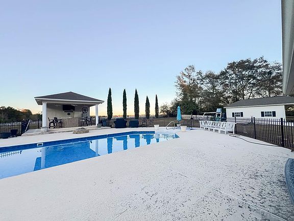 Welcome to this beautiful brick home with a sparkling pool, perfectly situated on a quiet cul-de-sac in Sylvester, GA. Enter through the inviting front foyer, accented by a beautifully landscaped yard and detailed front door. Hardwood floors flow through the foyer, living room, and dining room, creating a warm and welcoming feel throughout the main living areas. The dining room features built-in cabinets perfect for displaying your china—ideal for entertaining. Just off the entryway is a large den with gas-log fireplace, providing a cozy place to relax. From the den, step out onto the covered porch that leads to the stunning backyard and pool area. Back inside Down the hallway, you'll find the spacious primary bedroom with an updated bath and generous walk-in closet. The additional bedrooms are also large and offer great closet space. Two full baths serve the bedroom areas for added convenience. The kitchen is beautifully updated, featuring granite countertops, modern appliances, and plenty of workspace for food preparation. From the kitchen, you'll enjoy a lovely view of the pool, making cooking and entertaining even more enjoyable. A cozy breakfast area sits just off the kitchen, complete with an exterior door leading directly to the carport for added convenience. The backyard is truly an oasis. Enjoy a beautiful 1734 pool (per CH) with three entrances, a dedicated bath for pool guests, and a covered brick outdoor kitchen/grilling area perfect for gatherings. A fire-pit area provides even more space for relaxing or entertaining. Just off the pool area is a large, wired 1425 workshop—ideal for projects, storage, or hobbies. This home offers everything you need for comfortable living and exceptional outdoor enjoyment.