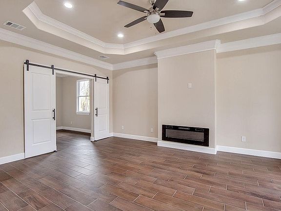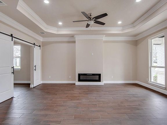 This stunning NEW home boasts tons of natural lighting with a formal living space upon entry with a built-in fireplace and office space through the large sliding barn doors. Utility room with built in cabinetry and space for a full-sized washer and dry set. Kitchen with modern cabinetry, granite countertops, stone backsplash, and updated stainless steel appliances including a fridge, dishwasher, & an electric range. Breakfast bar overlooking the second living and formal dining areas. Spacious master suite with recessed ceilings and lighting with an ensuite bath featuring a double vanity, and a dual walk in shower along with an oversized walk in closet. Split secondary bedrooms are spacious with large closets, plush carpet flooring. Adjacent secondary full bathroom with an abundance of storage from the built ins, & a walk in shower. Large covered back patio with an outdoor ceiling fan is perfect for entertaining . Home owner will be adding wood privacy fence to enclose backyard. Tenant pays all utilities, renters insurance, and responsible for all lawn care. QUALIFICATIONS: Minimum credit score requirement of 600 to receive the deposit advertised on the listing. An additional deposit may be required if the property owner chooses to make an exception for a credit score below the minimum requirement. Applicants must have a combined gross income of at least three times the monthly rent. Applicants must have 2 years of continuous work history. Applicants are to have 2 years of rental history and provide prior residence references. Applicant records must not contain late payments or judgments in the last 12 months. Applicants must not have any evictions/eviction filings in the past 5 years. No Pets permitted at this property