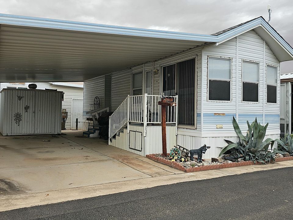 Charming and well-kept home in a desirable 55+ community with owned land and a host of amenities. Enjoy peace of mind with a newer roof (2019) and newer hot water heater (2021). Property includes a spacious carport and large shed for added storage. This is a fantastic winter escape or full-time residence. The vibrant community features 4 pools, 4 spas, pickleball courts, a clubhouse, annex building, card games, crafts, ceramics, horseshoes, and much more. Come experience the lifestyle you've been waiting for!