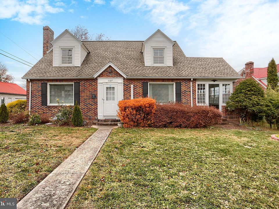 This charming, well-known brick Cape Cod on the edge of town is up for sale and looking for its new forever owner(s). Enjoy this lovely 2100 sqft home's generously sized living room as you cozy up to your fireplace, with a beautiful brick hearth is ready for you to decorate just in time for the holidays. The newly installed mini splits heat pumps add modern hvac to both floors, as well as the new water heater installed separately from the warm oil furnace. Kitchen is retro and original for the right person or add great space to work with and add your upgrades to it. Best part is the size, new fridge, newer stove/oven, the breakfast area, built-ins, and inviting French doors leading to your dining room to entertain. Laundry room is off the kitchen, tucked in its own room off the brick-enclosed sunroom that provides a quiet space to relax. Knotty pine bonus room off the west side can be used for an extra Den, Study, or possible 4th bedroom. Upstairs you'll find 3 traditional cape bedrooms, with a bonus changing room/oversized closet. The outside corner lot provides some good privacy, newly set patio area, garden boxes for the spring planting your vegetables, and a nicely tucked in 2 car brick garage with electric openers and paved drive area in the front. This is an attractive, sturdy home, with great curb appeal, ample sized rooms, and plentiful storage. Capes ARE charming! Come inside, and you’ll see why!