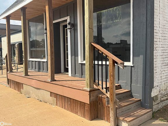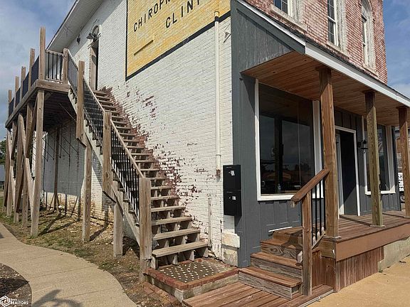 Prime Commercial + Residential Opportunity on Main Street! This beautifully remodeled storefront offers versatile retail or office space with exposed brick walls, soaring ceilings, modern lighting, a kitchenette, and restroom—blending rustic charm with contemporary style. Perfectly located next door to the public library, the property also includes an updated upstairs 2-bedroom, 1-bath apartment with brand-new replacement windows, laundry room, and forced-air heating with central air. With a full basement, newer metal roof, and both front and rear parking, this turnkey property is an ideal investment in the heart of town!