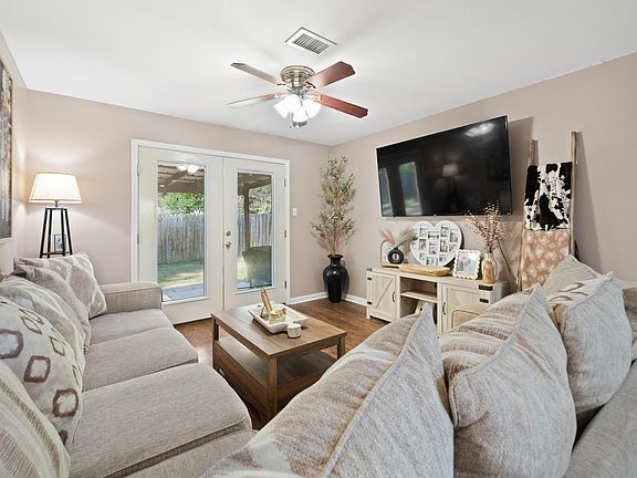Perfectly situated near town in a quiet, established neighborhood, this charming 3 bedroom, 2 bath home offers comfort and easy living. You’ll love the privacy-fenced, spacious backyard—ideal for kids, pets, or entertaining from the covered porch. A small storage shed in the back yard provides extra space for lawn and gardening equipment. Inside, the meticulously maintained interior features an open, split floor plan with a neutral color palette and hard-surface floors throughout—no carpet! The primary suite includes a walk-in closet and private bath, while two guest bedrooms and a full guest bath are located on the opposite side. New HVAC system and New Roof installed in 2024. Move-in ready and affordably priced—a wonderful first home or downsizing opportunity.