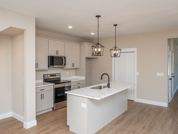 Step inside and enjoy a bright, open floor plan designed for both comfort and style. The modern kitchen features beautiful cabinetry, a large quartz island perfect for entertaining, an oversized pantry, and stainless steel appliances. The kitchen flows seamlessly into the dining area and spacious living room, complete with an office nook, ideal for remote work or study.
