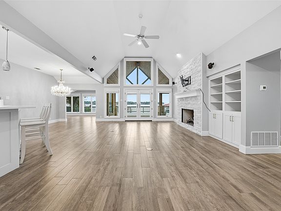 TASTEFULLY UPDATED AND TRULY MOVE-IN READY, THIS WARM AND COMFORTABLE HOME WELCOMES YOU WITH AN OPEN FLOOR PLAN, HIGH VOLUME CEILINGS, AND WALLS OF WINDOWS FRAMING INCREDIBLE LAKE VIEWS. A STONE FIREPLACE ANCHORS THE MAIN LIVING AREA, WHILE THE BEAUTIFUL KITCHEN FEATURES SOLID-SURFACE COUNTERS AND A SERVING BAR THAT FLOWS SEAMLESSLY INTO THE LIVING AND DINING SPACES. THE PRIVATE OWNERS SUITE OPENS TO A SECONDARY LIVING AREA OVERLOOKING MAJESTIC WATER VIEWS. THE EN-SUITE BATH OFFERS A SEPARATE SHOWER AND RELAXING TUB. STEP OUTSIDE TO A WONDERFUL COVERED PORCH WITH AN OUTDOOR KITCHEN AND EXTENSIVE DECKING-PERFECT FOR LAKESIDE LIVING AND ENTERTAINING