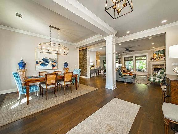 PREMIER 3,960 SQ FT LUXURY IN CHENAL VALLEY'S ENSBURY PLACE! This exceptional 5 bedroom, 4.5 bath home is designed for sophisticated living. Step inside the grand open-concept floor plan featuring striking 10-foot ceilings and natural light. Gather around the warm wood-burning fireplace in the living room on chilly evenings. The spectacular Owner's Suite is a true sanctuary with an oversized walk-in closet and a spa-like bath boasting a soaking tub and separate walk-in shower.. Outdoor entertaining is effortless on the covered porch, complete with its own wood-burning fireplace and dedicated TV hookup. Location is unparalleled: enjoy a 1-minute golf cart ride to Chenal Country Club's Bear Den Course! The home is supported by high-end features, including an oversized 3-car garage, dual tankless water heaters, a home security system, and an in-bar fridge/ice maker. The property boasts beautiful, enhanced landscaping maintained by an irrigation system. A new EZ-GO golf cart is also available for separate purchase.