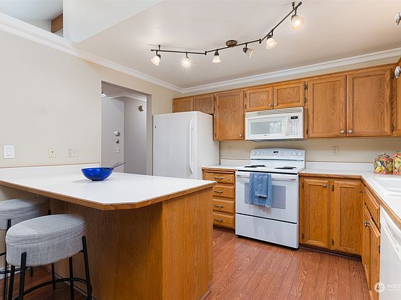 Amazing creekfront condo with serene setting on edge of wooded hillside bordering Fishtrap Creek. Enjoy creek views! Spacious condo, 2 large bedrooms, 1 3/4 baths, great loft area for rec room, office or 3rd bdrm. Crown molding, lofty ceilings, 1 car garage & 1 off street parking. Walk to the fairgrounds, shopping or restaurants. Everything you could desire in this well appointed condo.