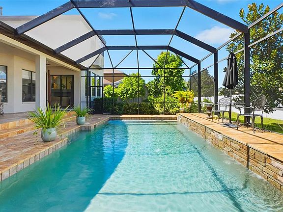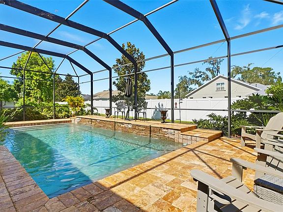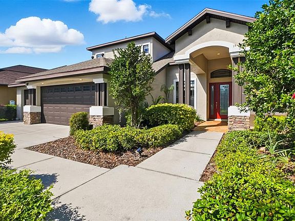 Welcome home to 107 Falling Water Drive—a truly magnificent residence offering the best in multi generational living. With over 5,000 square feet of thoughtfully designed space, this former model home showcases countless upgrades on a beautifully landscaped corner lot. From the moment you step into the grand foyer and formal dining area, you’ll be captivated by the natural light and elegant engineered hardwood flooring that flow throughout the home. A designated office with French doors provides the perfect space for remote work, while a cozy den featuring floor-to-ceiling bookshelves overlooks the expansive pool deck, creating a serene retreat for relaxation or reading. The home’s layout is designed with privacy in mind, with the luxurious master suite tucked away on one side and a guest suite area with two bedrooms and a shared full bath on the opposite side. The primary suite is truly grand, offering a spacious sitting area, tray ceilings, and direct access to the pool. The en suite bath feels like a private spa, complete with dual sinks, an indulgent walk-through shower with three shower heads, and a soothing garden tub. For the culinary enthusiast, the chef’s kitchen is a dream come true—featuring high-end stainless steel appliances including a six-burner natural gas range with double ovens, a sleek stainless hood, granite countertops, 42-inch upper cabinets with under-cabinet lighting, a walk-in pantry, and a large island with ample storage and outlets. The kitchen seamlessly opens to a bright breakfast nook and an inviting family room, both overlooking the sparkling pool and backyard. Upstairs, you’ll find a fully equipped theater room with an 80” x 45” screen, a new built-in projector, and comfortable theater seating—all included with the home. Two additional bedrooms and a spacious flex room provide endless possibilities for a playroom, exercise area, or creative studio. Step outside to your personal paradise on the tiered pool and patio area, complete with multiple seating spaces, a mounted television, and a beautiful lighted waterfall feature surrounded by travertine tile under a screened enclosure. The outdoor kitchen is fully equipped with a gas grill, mini fridge, sink, countertop space, and under-counter storage—perfect for entertaining or poolside dining. Additional features include a large laundry room with built-in cabinetry, an air-conditioned hobby room in the garage, a built-in bar with wine refrigerator, and stereo surround sound throughout the entire home. Centrally located near shops, restaurants, the Crosstown Expressway, and I-75, the gated community of Stonewood offers large lots and outstanding curb appeal. This home truly has it all—luxury, comfort, and functionality. You won’t find another home with this square footage and level of detail at this price. Schedule your private showing today!