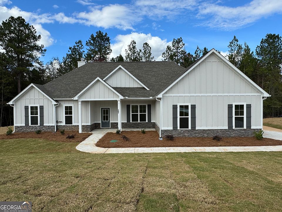 New Construction spacious ranch home in an established neighborhood on a large lot. Open concept 4 bedrooms, 2 bathrooms home with 2 car garage. SPC "wood" plank flooring is durable, waterproof and scratch resistant. Walk in to the foyer that leads to huge family room with wood burning fireplace, open to large kitchen with shaker cabinets, island, granite counter tops and stainless steel appliances, formal dining room could be home office or playroom. Huge primary suite with spacious walk-in closet, en suite bathroom with separate double vanities, separate shower and garden tub. 3 additional bedrooms and full bathroom with double vanity. Hardi board concrete siding and Architectural shingles. Home is Under Construction - Expected completion in November.
