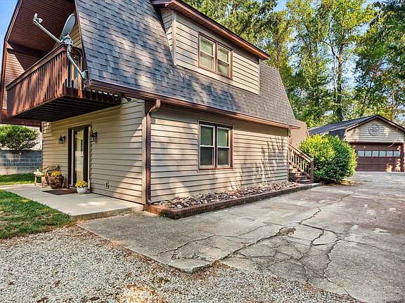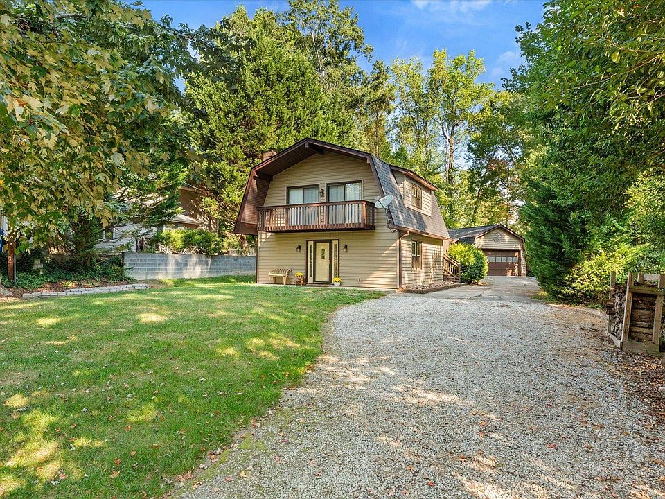 Welcome to this beautifully updated home in a centrally located neighborhood close to everything—shopping, dining, schools, and more! Step inside to find an open floor plan anchored by a stunning stone wood-burning fireplace, perfect for cozy evenings. The spacious kitchen features custom hickory wood cabinets, granite countertops, and an attached dining area, ideal for entertaining.  The second-floor primary suite includes a private balcony, offering a peaceful retreat. You'll love the oversized garage with abundant storage—perfect for hobbies, tools, or a dream workshop. Step outside to a large yard with a deck that is great for relaxing or hosting gatherings.  Additional upgrades include a new roof, new luxury vinyl tile flooring, and a new hot water tank. Enjoy the natural charm of this home and all the comforts it has to offer!